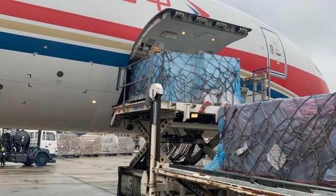 Los suministros médicos de China llegan a España. Foto: Xinhua / Qiu Yijing