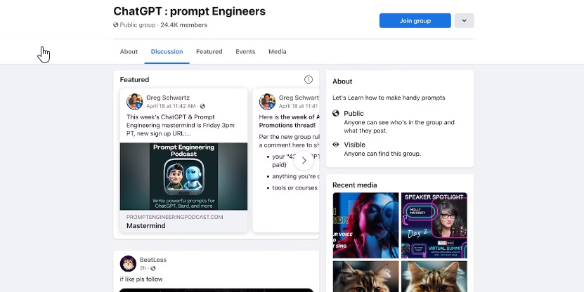 ChatGPT Prompt Engineers es una comunidad decente para principiantes. Los miembros generalmente solo hacen preguntas de conocimiento general sobre cómo escribir indicaciones y obtener resultados óptimos. No tendrá problemas para mantenerse al día con las discusiones.