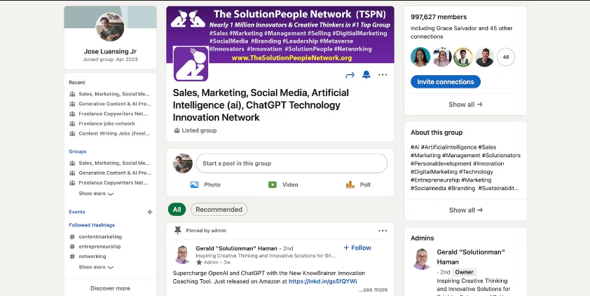 Los administradores son relativamente activos. Cada pocas semanas, cargan recursos relevantes, como sitios web, archivos PDF y herramientas. También puede conectarse con ellos para consultas. Simplemente no espere una respuesta inmediata a menos que ya tenga mutuas.