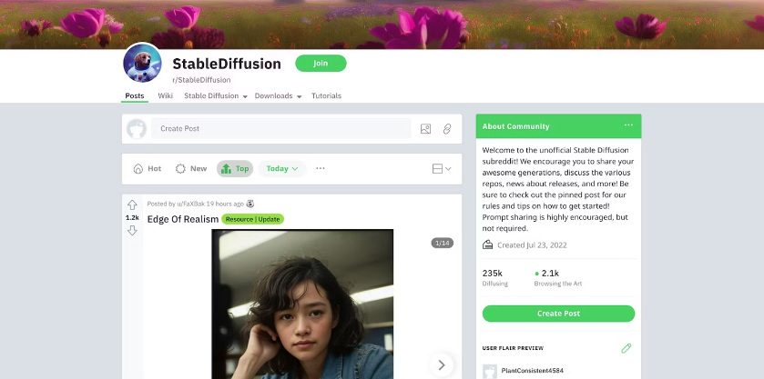 r/StableDiffusion es el subreddit más grande dedicado a Stable Diffusion. La comunidad permite compartir flujos de trabajo. Sin embargo, alienta principalmente a los usuarios a publicar resultados y discutir noticias relevantes de IA: la ingeniería rápida es simplemente una parte de la generación de arte de IA.